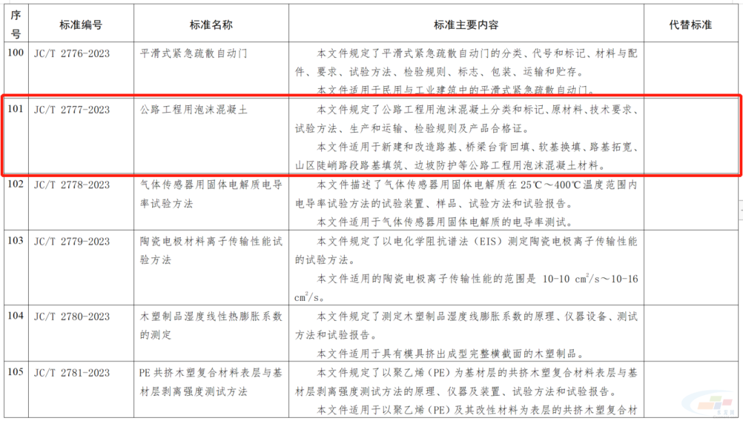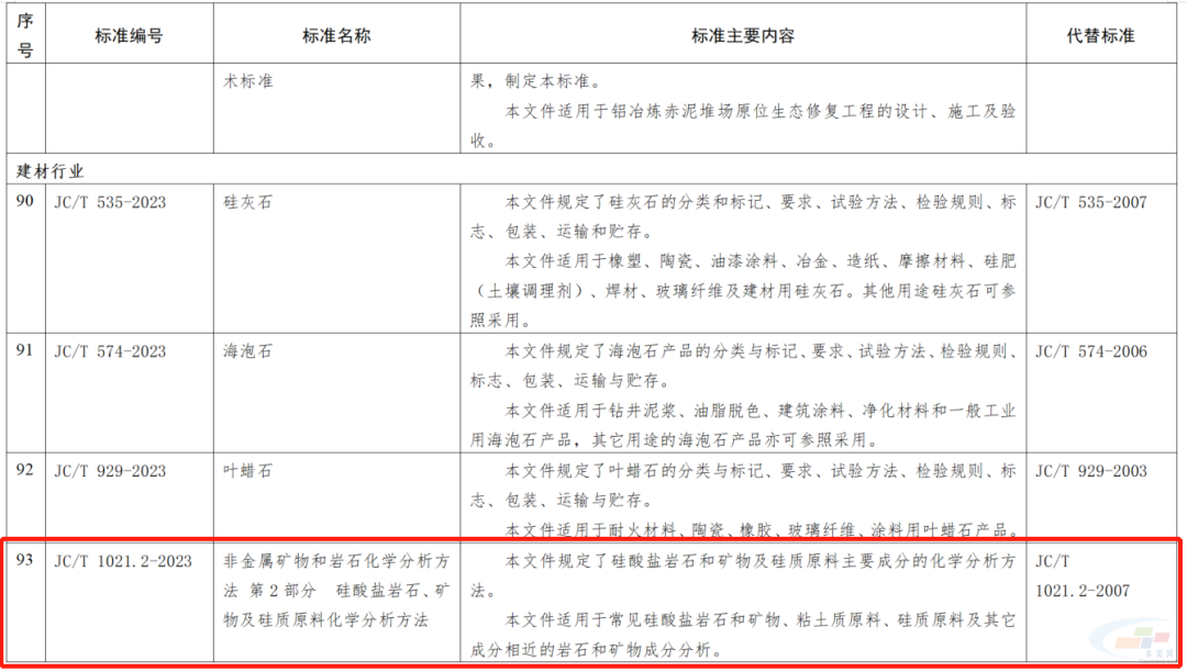 其中,水泥行業相關的,非金屬礦物和巖石化學分析方法 第2部分 硅酸鹽巖石、礦物及硅質原料化學分析方法;水泥制品工藝技術規程 第1部分:混凝土和鋼筋混凝土排水管;填筑用泡沫混凝土;公路工程用泡沫混凝土;水泥工業用V型靜態選粉機;建筑材料用移動式破碎站;石墨改性水泥基保溫板;預應力混凝土薄壁管樁;混凝土地面用水泥基耐磨材料;蒸壓加氣混凝土設備 切割機組;預制鋼筋混凝土方樁11項行業標準被列入其中。