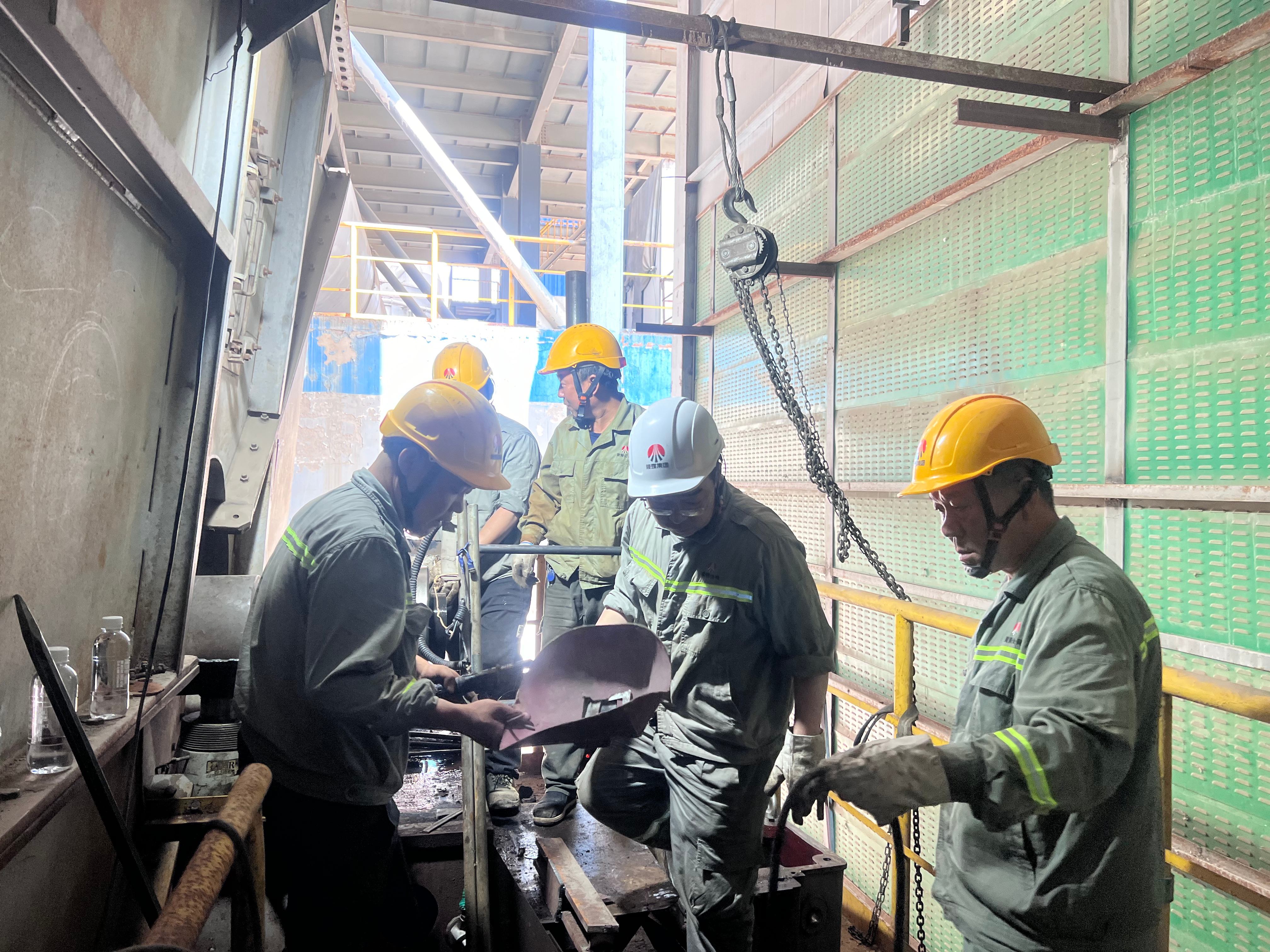 面對難題,電鉗專班成員們沒有退縮。他們果斷采用切割方式一點點拆除舊軸承,又運用油浴加熱工藝精細安裝新件。老師傅帶著年輕人,一邊操作一邊講解,手上沾滿油污,卻絲毫不影響操作的精準。從拆卸到安裝,從清理到調試,分工明確、忙而不亂,每一個環節都透著專注與默契。