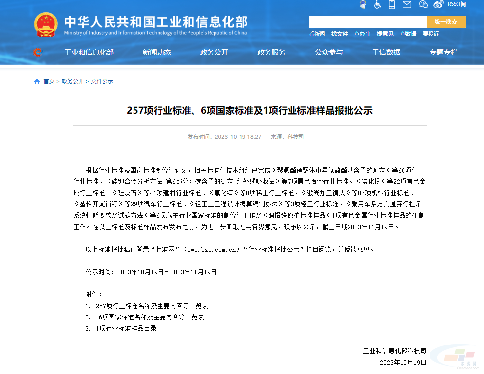 工信部公示了11項水泥行業相關的行業標準!